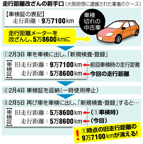 中古車のメーター巻き戻しに新手口・・・車検証の走行距離を「リセット」 |
