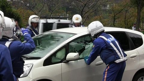 豆知識:警察の支持に従わないと車のガラスを割られる |