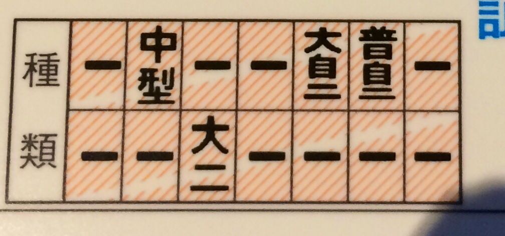 原付、中型、大特、大型2種だけ埋まってるわ
