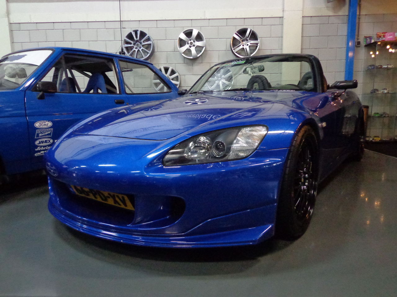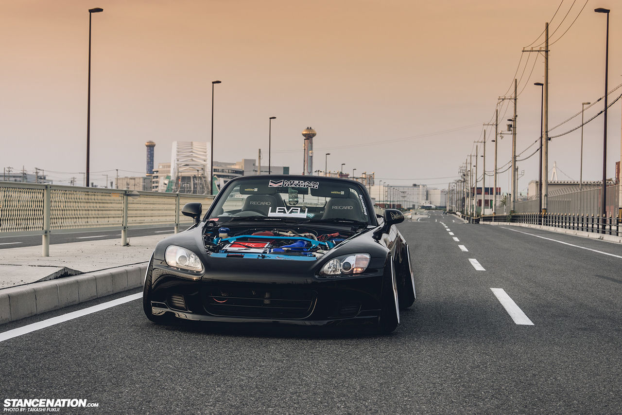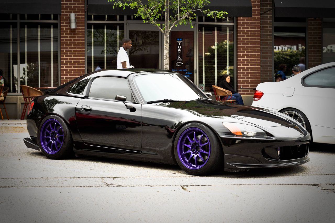 黒のAP2でホイールはリーガマスターEVOでj,sレーシングのマフラーと車高調入れてる