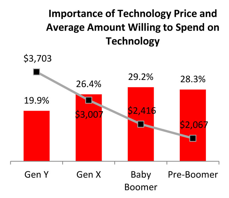 新技術の搭載に積極的である。Yジェネレーションが新技術に費やす平均金額は3703ドルで、