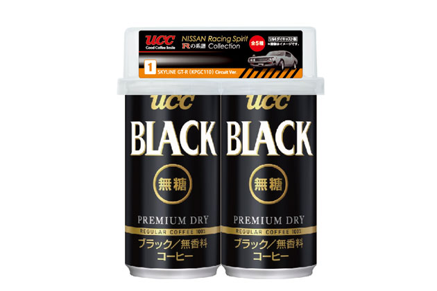 UCC BLACK無糖の缶コーヒーを購入すると、2本に1個、1/64 scaleダイキャスト製・日産のミニカーが景品として付いてくる