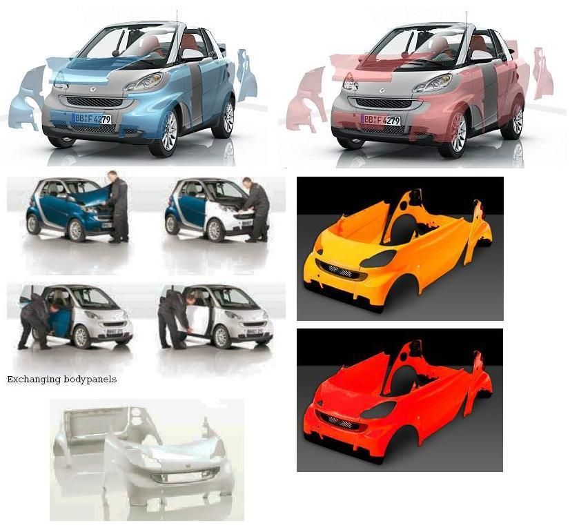 フェンダーやフードなど外板部品を交換できる斬新なアイデアを採用。