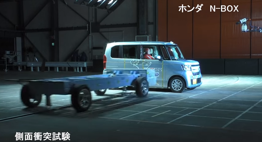側面衝突試験は確か、1,000kgの重量物が50km/hでぶつかった場合の安全性を測る訳で、実情は軽でも1,000kgに迫る重量が有り、それ以上の自動車はもっと重い上に、一方が停止している状態なんて事故の割合からすれば、僅かな率でしょう。