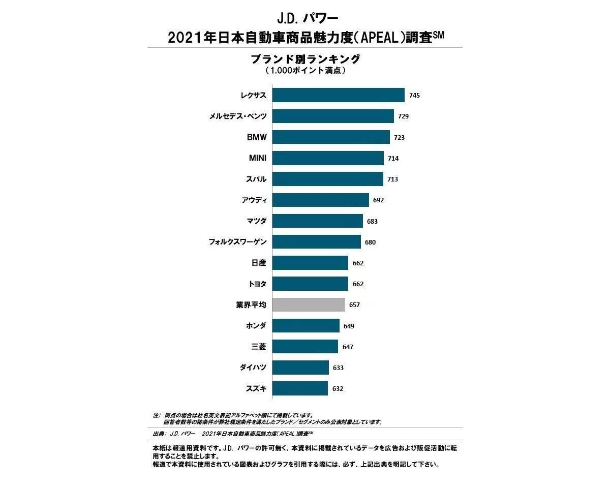 ジェイ・ディー・パワー ジャパンは10月13日、「日本自動車商品魅力度調査」の結果を発表した。調査は5月~6月、新車購入後2~13ヶ月経過した18歳以上の男女1万9,615名を対象にインターネットで行われた。