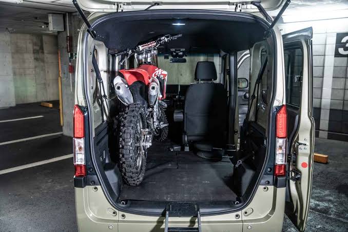 Nバンで助手席倒してそこまでバイク持ってきて積載するのは実は違反で最悪警察に切符切られらから注意な
