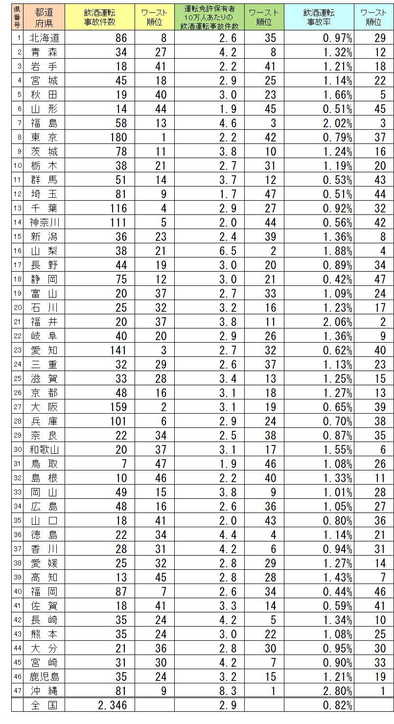 沖縄の率の高さは何なの?みんな泡盛抱えて運転してんの?