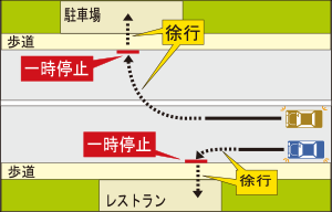 店の駐車場に入る時はかなりの確率で歩道を横切るんだから一時停止だぞ