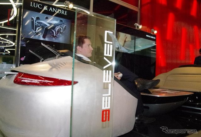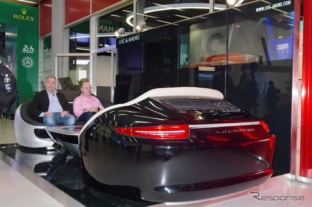 ジュネーブモーターショー会場のコンコースで、とりわけ異彩を放っていたのが、ポルシェ『911』のリアセクションを象ったソファーだ。これはポーランドのデザイン工房「LUC & ANDRE」社が手掛けた、その名も「ナイン・イレブン(911)」シリーズの新商品だと言う。