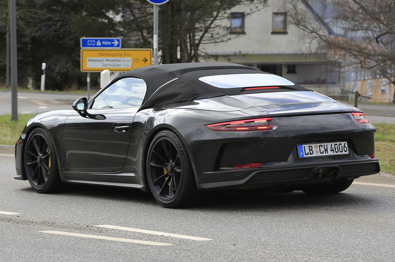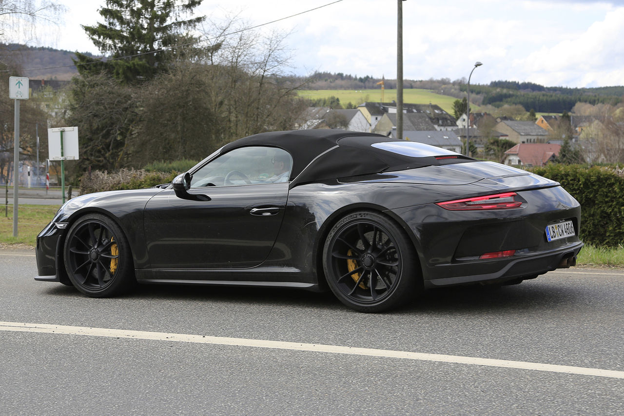 捉えたプロトタイプは、後部のルーフカバーを「カブリオレ」風にカモフラージュし、フロントバンパーとボンネットは『GT3』と同じです。リアデッキは「997スピードスター」よりスポーティに仕上げられると思われます。